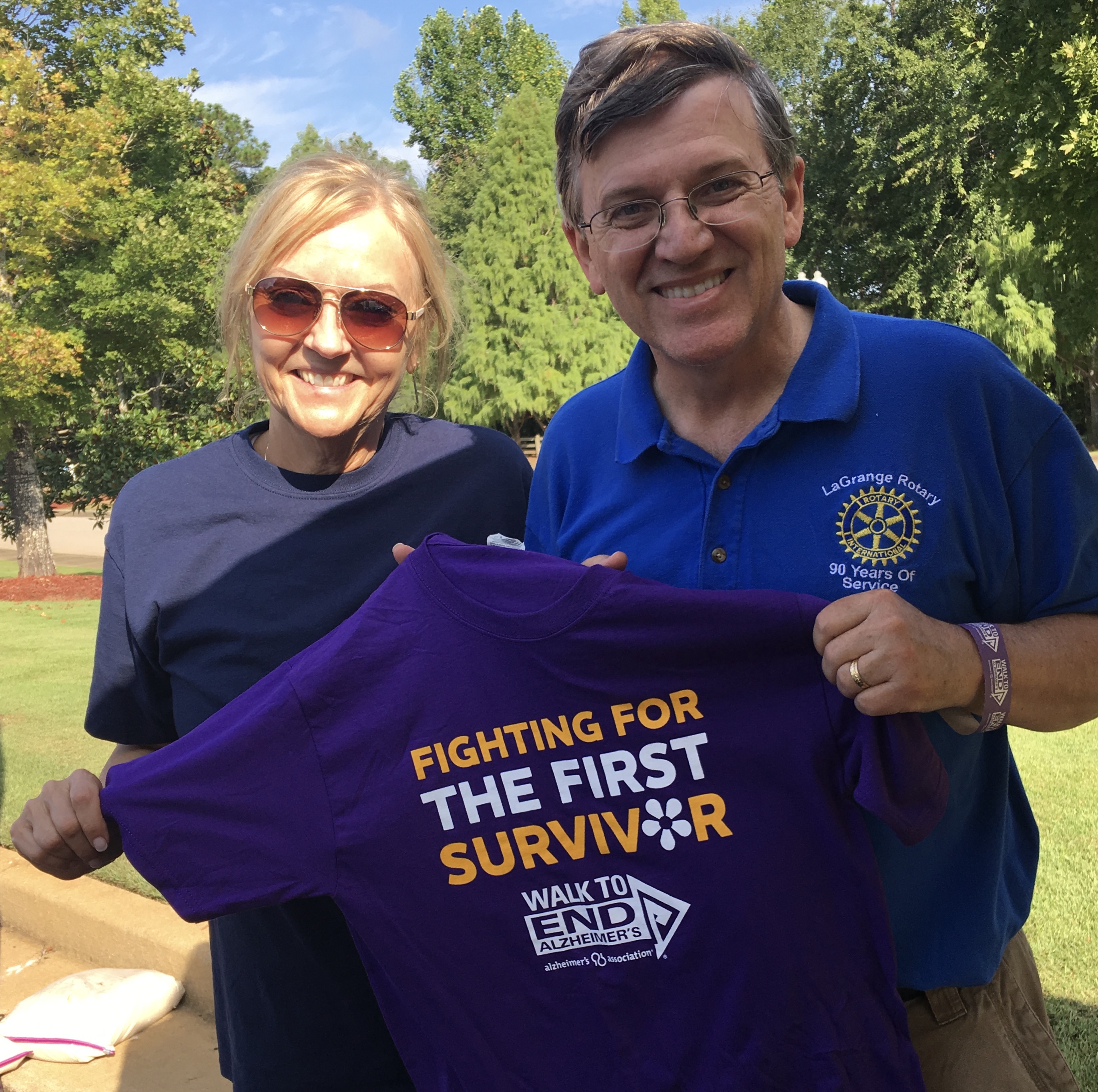 Rotarians Kathy and Ken show off the slogan that says it all.