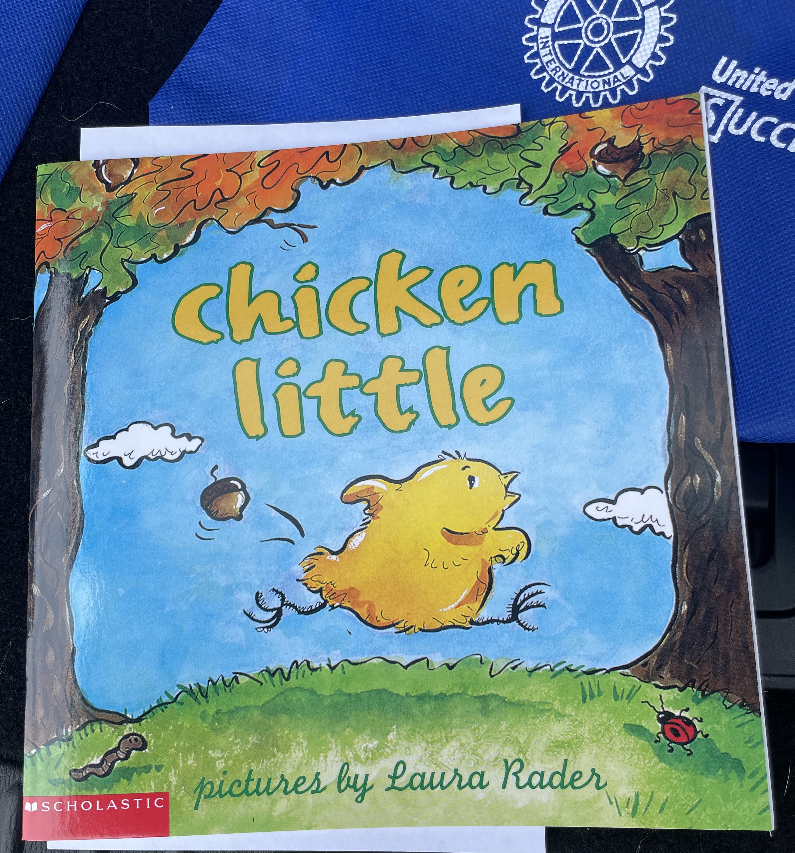 This year's book selection is given to each child in a blue Rotary tote bag along with an explanation to the parents for the presentation.