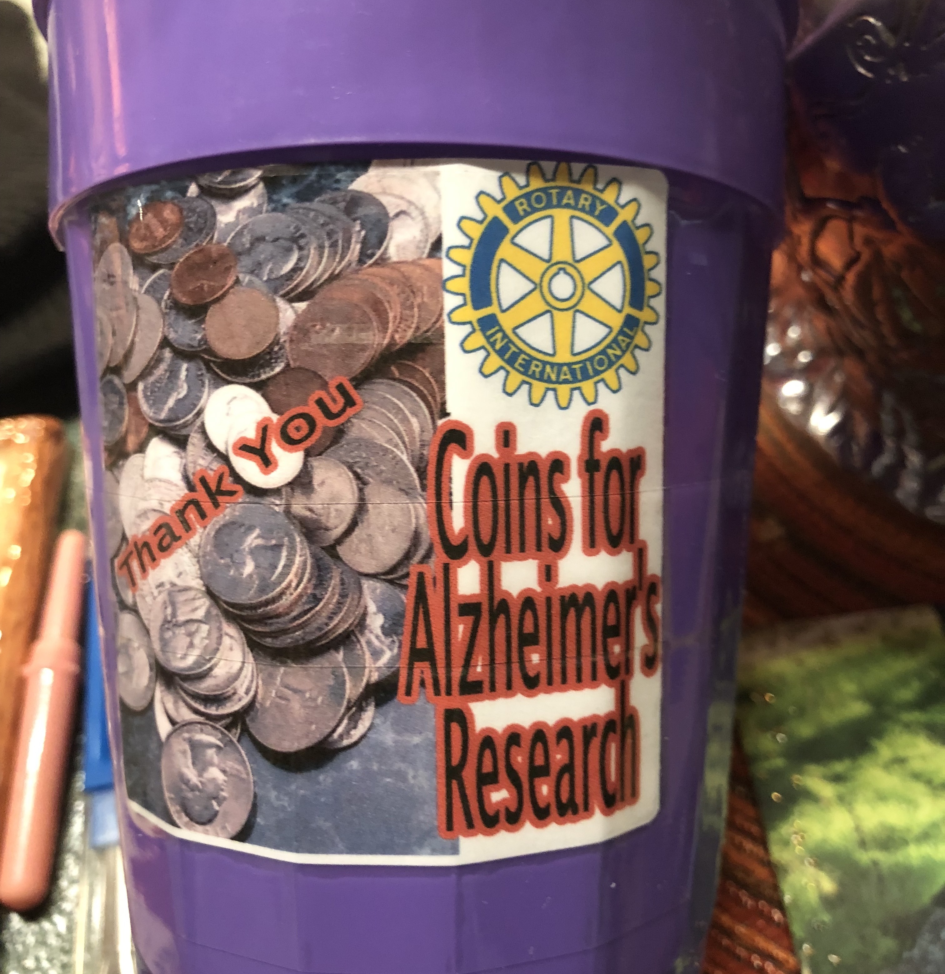 Each year our Rotary Club takes part in the District 6900's CART (Coins for Alzheimer's Research Trust) program. This year Lisa Nunn, one of our newer members, has taken on running this program.