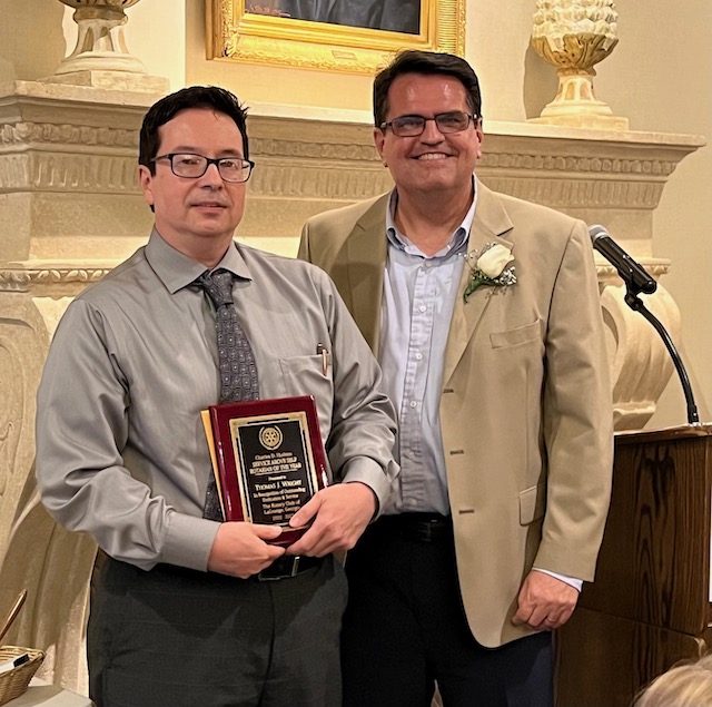 Jeff Wright was honored for his work on the club's weekly bulletin.