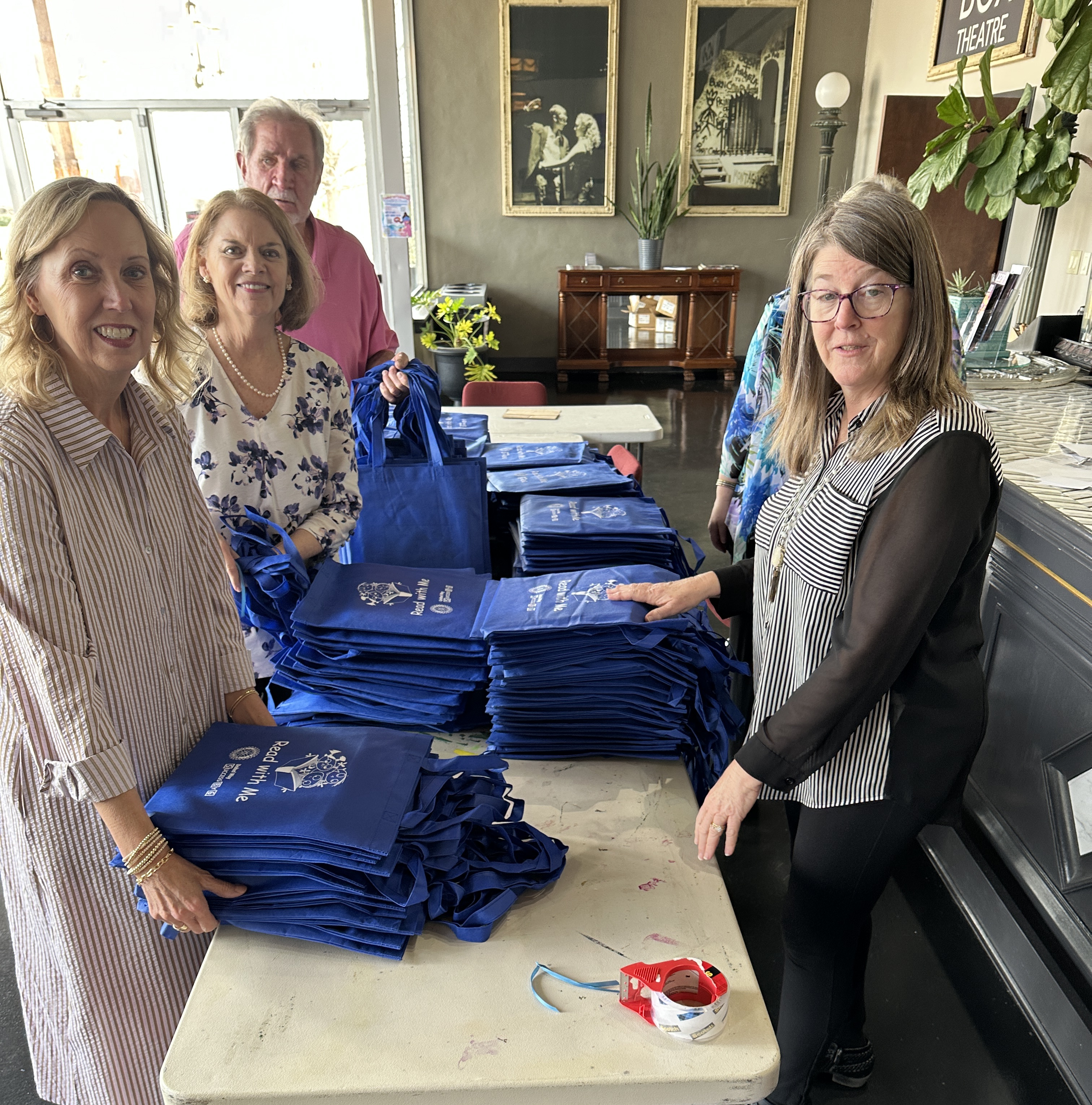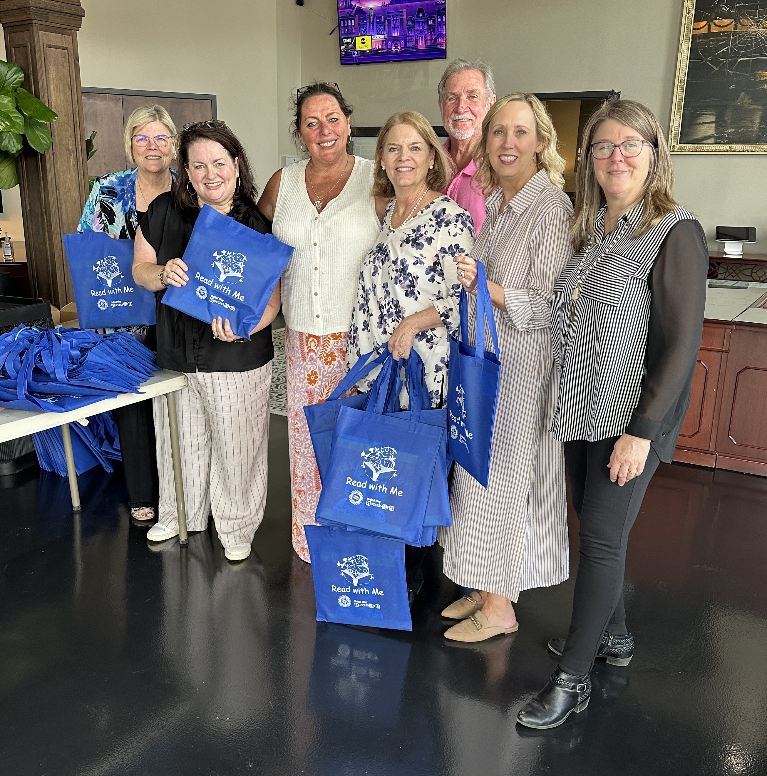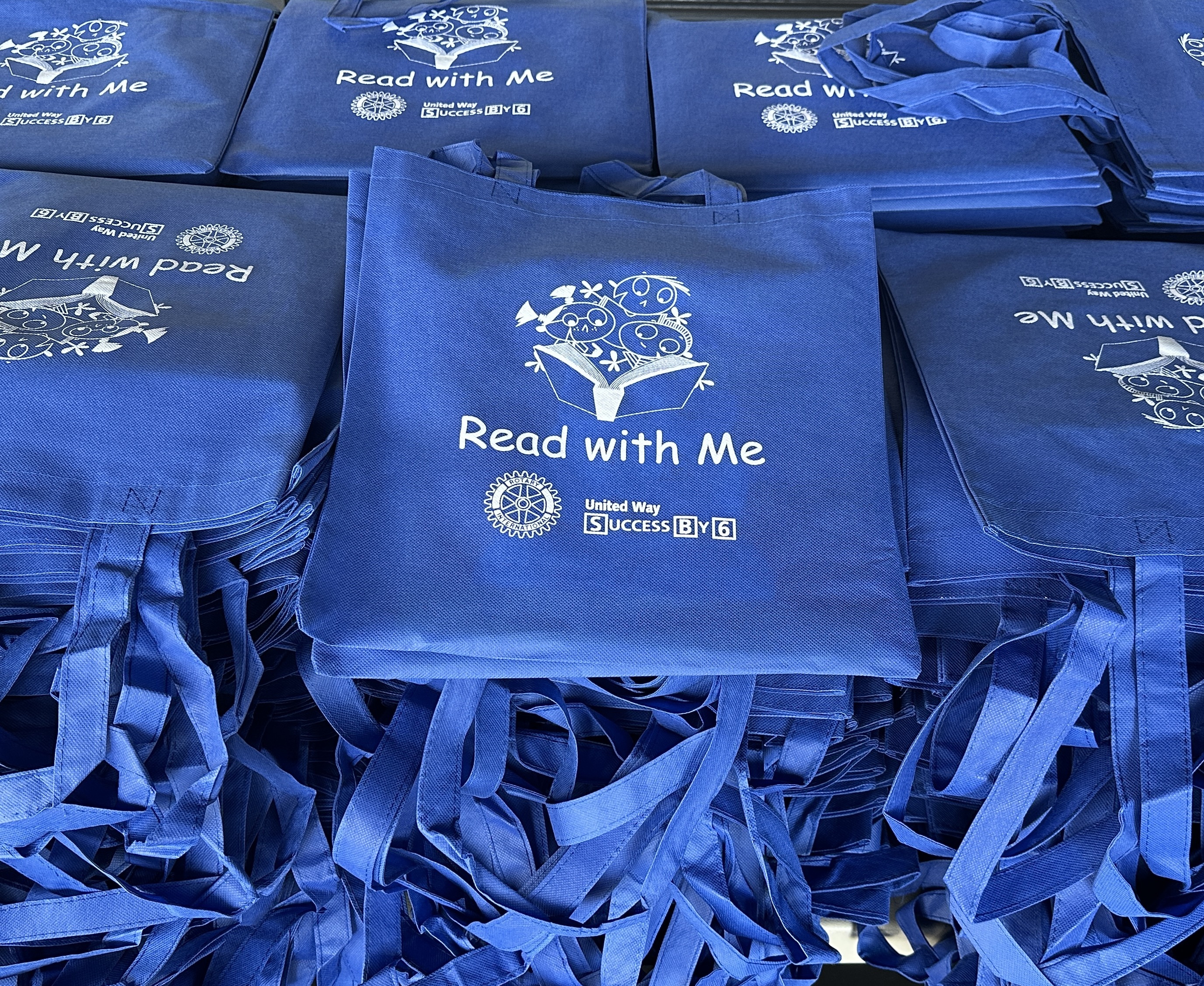 Rotary volunteers prepared the books with a note for the parents explaining the purpose of the project, a sticker identifying our Rotary club and then each book was placed in the special blue book bag. Volunteers then take the bags to eleven different pre-schools to introduce and read the selected book to the students and then finally distribute the books to the students. These visits are well-received by both and the students and the teachers.