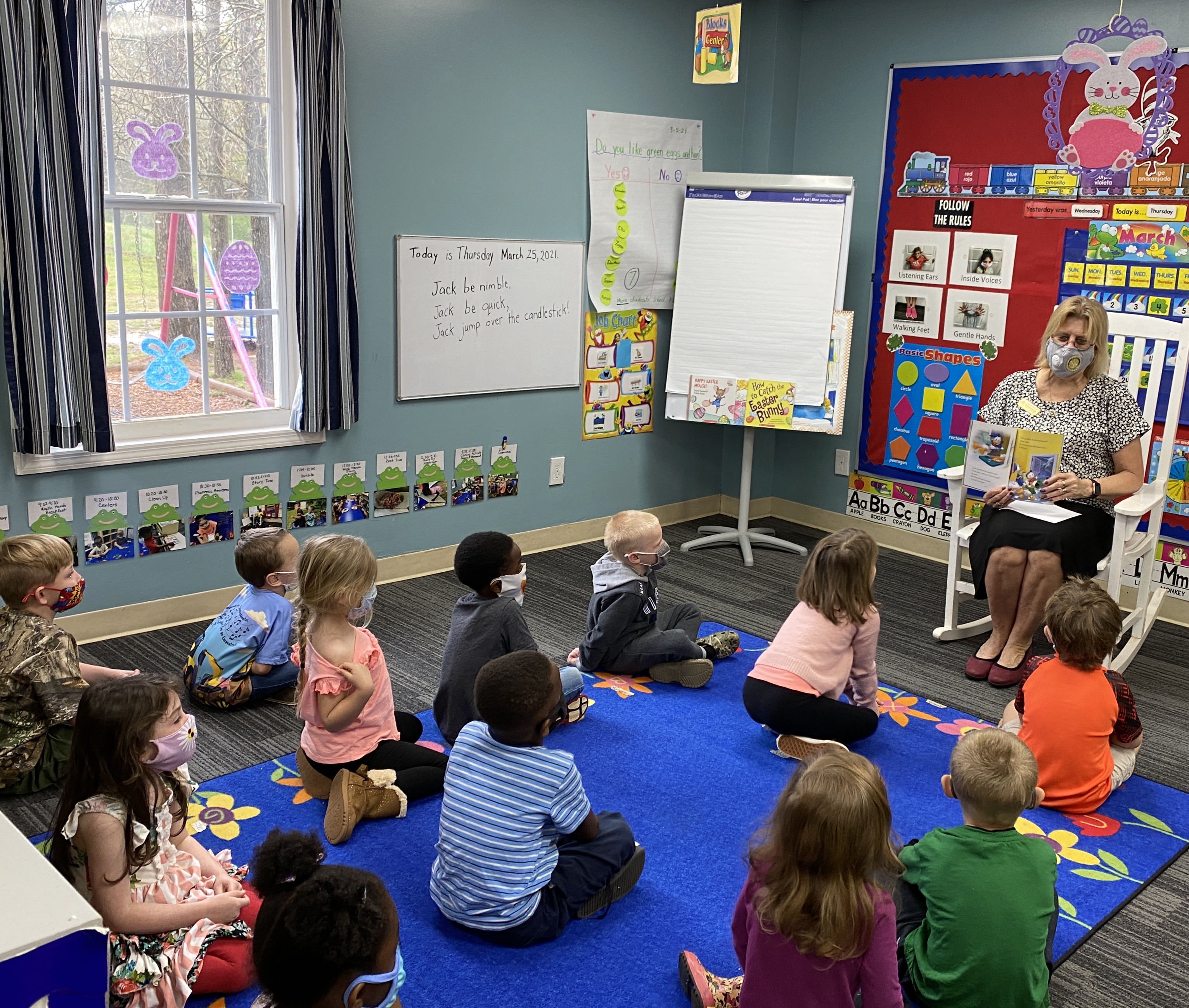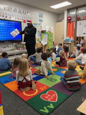 The children are always excited to have a special visitor read to them and then actually get their very own copy of the book.