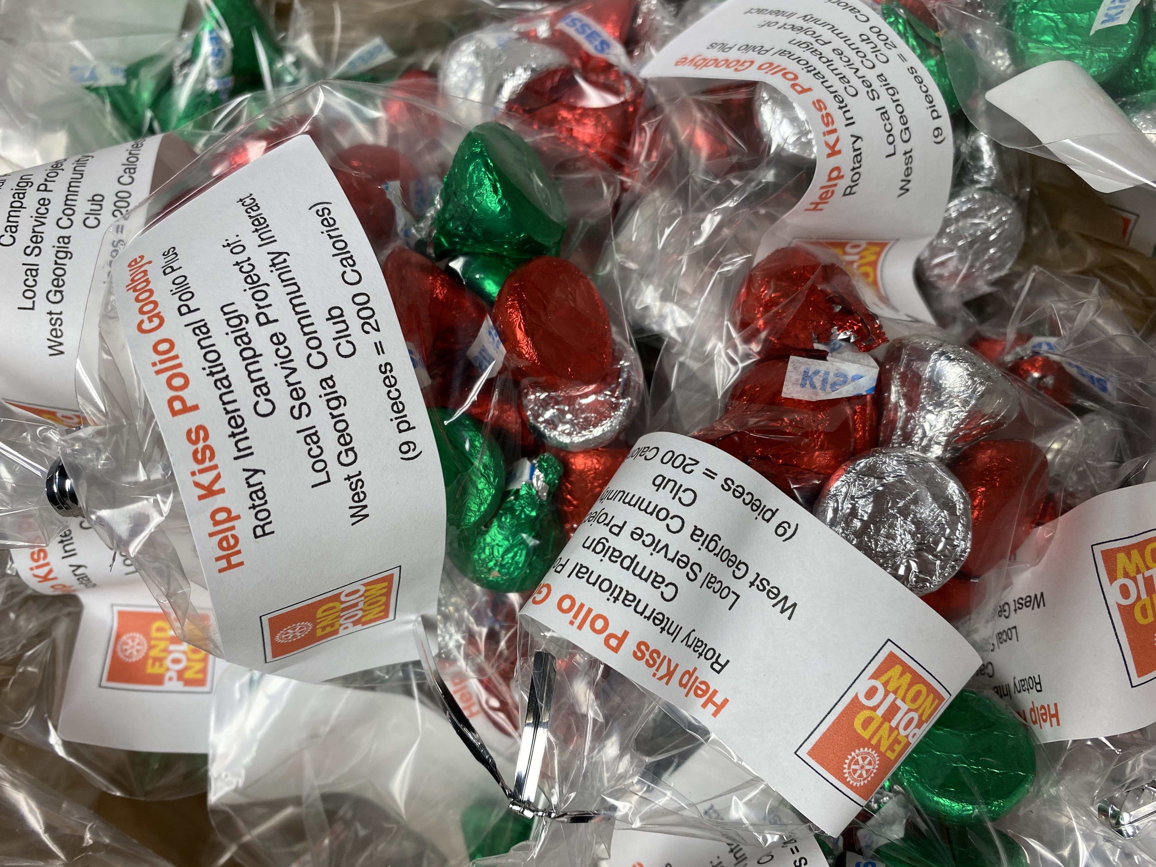 Two years ago, West Georgia Community Interact Club members designed a project that would raise money for the Rotary International's Polio Plus Campaign. This year the members of the Rotaract Club of LaGrange College and the Troup High School Interact Club also ran the project. The students from all three clubs put together small bags of Hersey's Chocolate Kisses, labeled them and then offered them for a one dollar donation to school and community members.